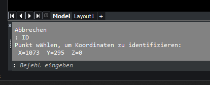 Hierfür könen Sie den Befehl "ID" in die Kommandozeile eingeben. Anschließend klicken Sie mit der linken Maustaste jeweils auf die Definitionspunkte ihrer SYSCAD-Objekte .